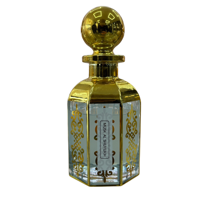 Musk Al Shuyukh is a refined blend of soft white musk and warm amber, layered with subtle rose, creamy sandalwood, and a touch of oud. Hints of vanilla, incense, and spice add depth, creating a scent that’s both elegant and timeless.